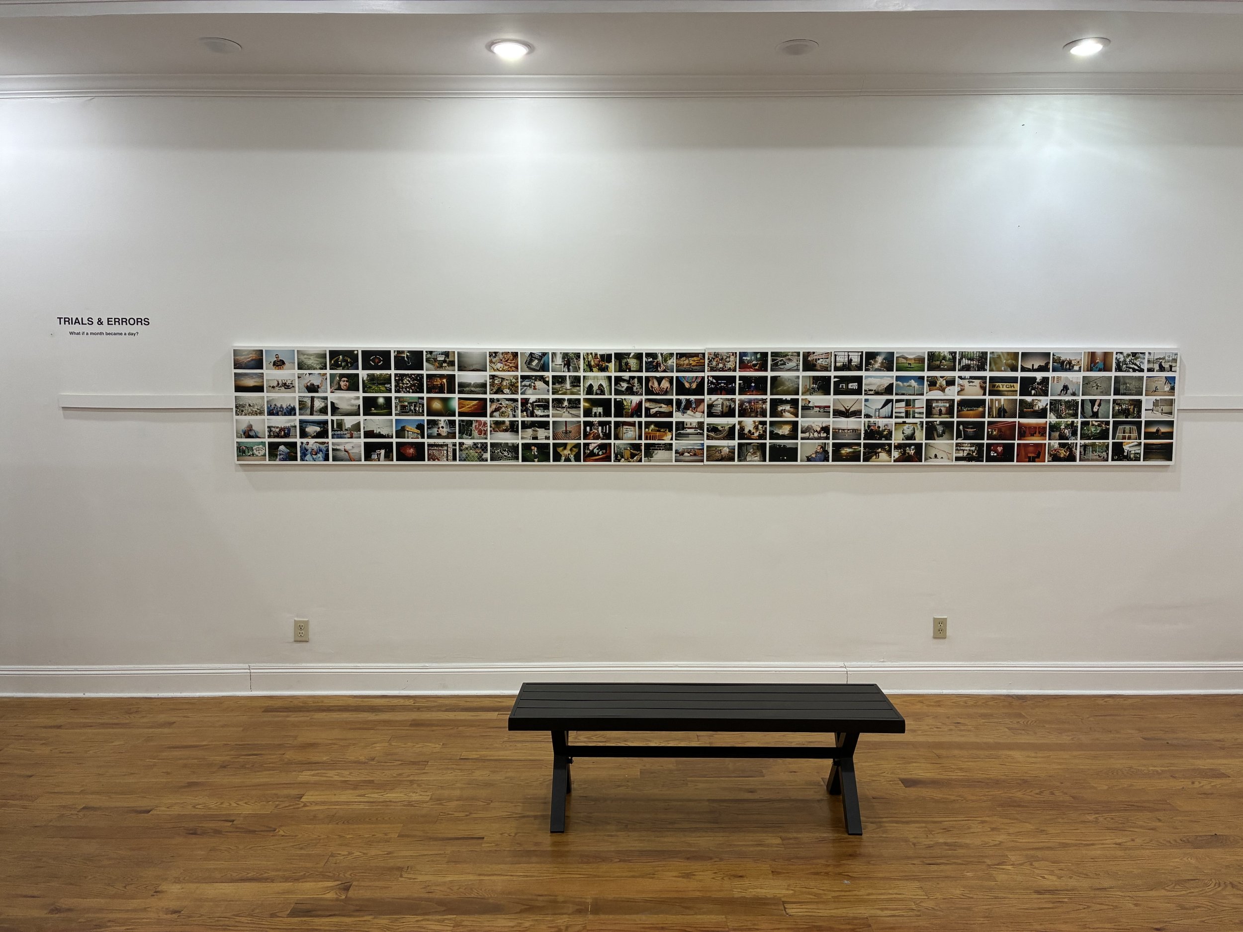The photographs emerged from moments where experiencing and documenting met in real time—not from a planned effort to gather work. Shot across trains, parks, neighborhoods, and the everyday edges of Japan, the images reflect movement and solitude rather than grand destinations. They are arranged into pocket constellations that hold small emotional terrains. Visitors can approach the piece from any direction, creating their own way of reading it.